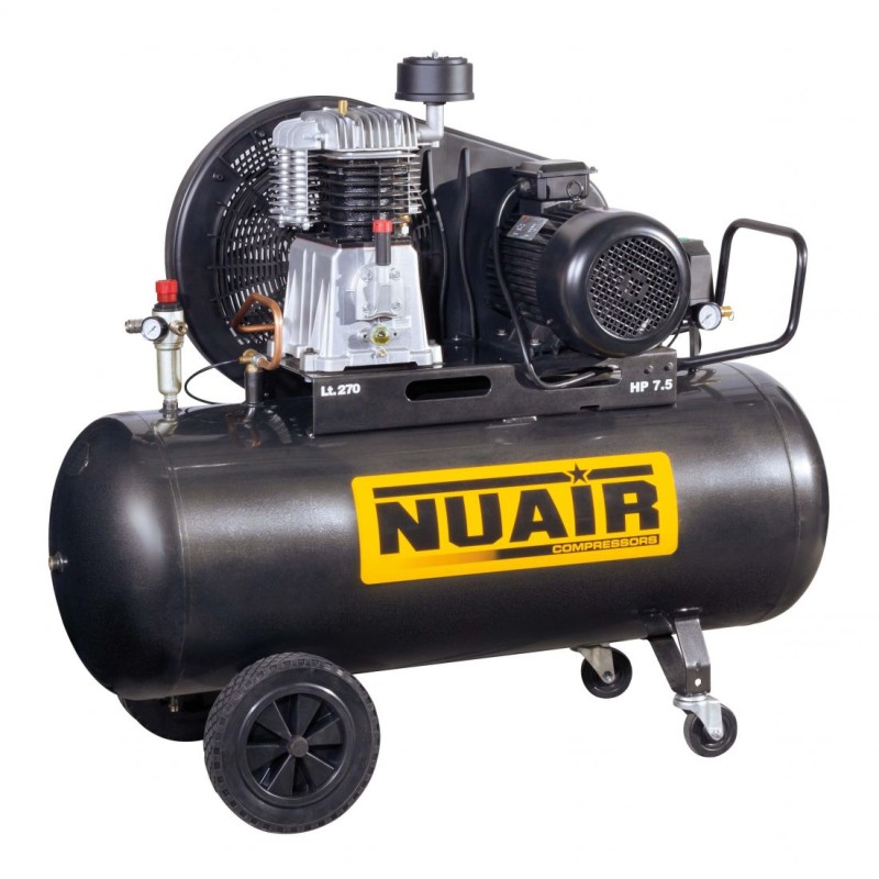 Kompresor olejowy NUAIR N7NC801NUA z dwustopniową pompą NB7 i zbiornikiem o pojemności 270 litrów 11 bar zapewnia wysoką wydajność i stabilne zasilanie narzędzi w średnich i dużych warsztatach. Dzięki solidnej konstrukcji i olejowemu układowi sprężania sprawdzi się w wymagających pracach pneumatycznych.