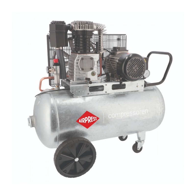 Tak, 90-litrowy galwanizowany zbiornik redukuje częstotliwość doładowań i utrzymuje wydajność przy typowym obciążeniu narzędzi pneumatycznych. Realne czasy pracy zależą od zapotrzebowania narzędzi.