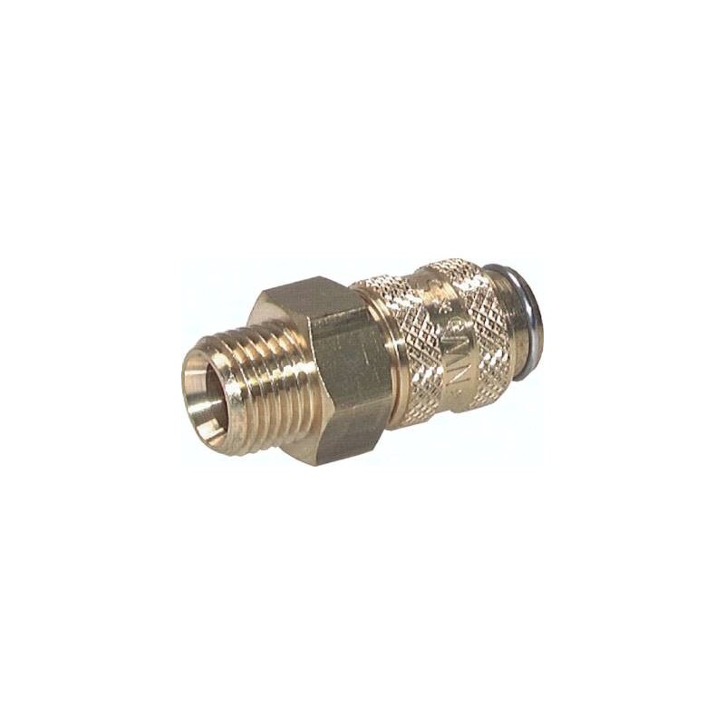 Szybkozłączka pneumatyczna NW5 z gwintem zewnętrznym G1/8", w wersji BA z mechanizmem odcięcia. Konstrukcja zapewnia bezpieczne rozłączanie połączeń i minimalizuje straty sprężonego powietrza. To niezawodne rozwiązanie przeznaczone do instalacji sprężonego powietrza, warsztatów oraz systemów automatyki przemysłowej, gdzie liczy się bezpieczeństwo, szczelność i łatwość montażu.
