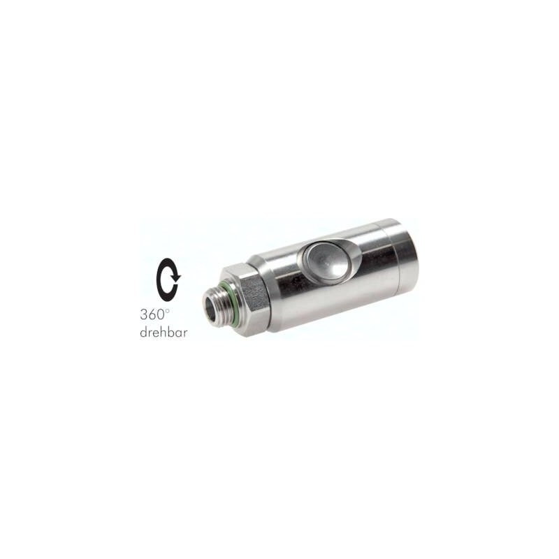 Szybkozłączka pneumatyczna bezpieczna NW7,2 z gwintem zewnętrznym G1/2", wykonana ze stali nierdzewnej (ES). Wyposażona w ergonomiczny przycisk bezpieczeństwa, umożliwia kontrolowane odcięcie i odpowietrzenie przed rozłączeniem, co minimalizuje ryzyko gwałtownego rozprężenia powietrza. Dzięki odporności na korozję i trwałej konstrukcji szybkozłączka znajduje zastosowanie w najbardziej wymagających środowiskach pracy, w tym w branży spożywczej i farmaceutycznej.