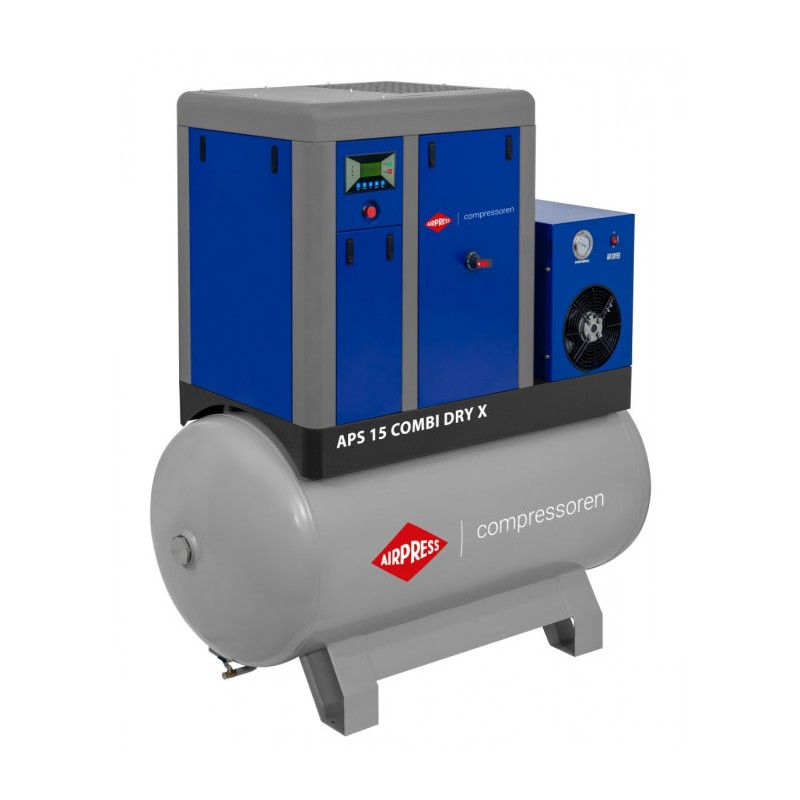 Kompresor śrubowy APS 15 Combi Dry X 10 bar to kompletne i energooszczędne źródło suchego sprężonego powietrza z osuszaczem i zbiornikiem 500 l.