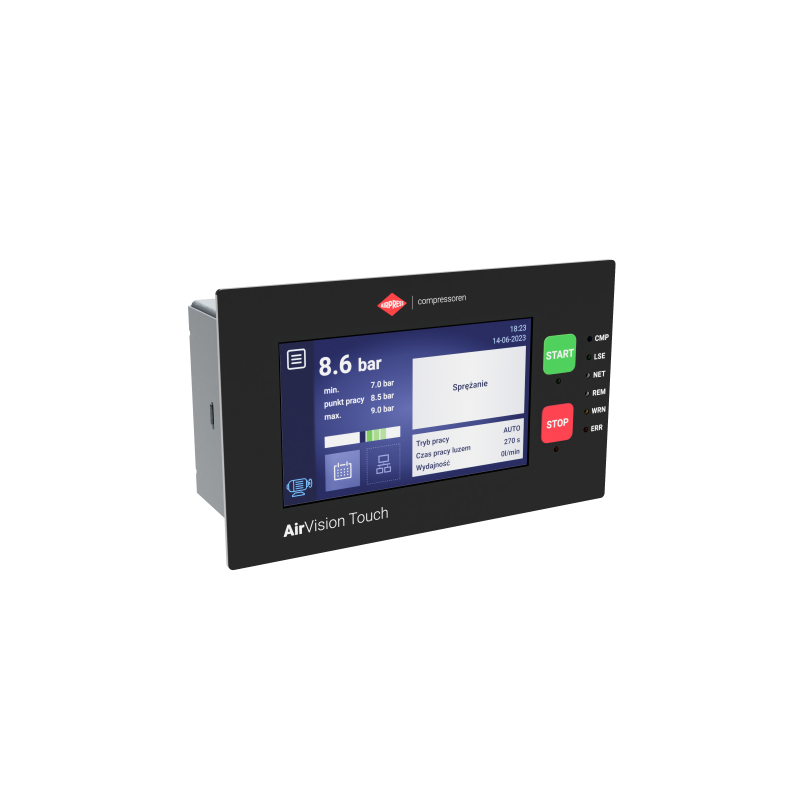 Sterownik mikroprocesorowy AirVision Touch to nowoczesne rozwiązanie do precyzyjnego sterowania kompresorami o mocy do 680 KM. Dzięki intuicyjnemu sterowaniu i zaawansowanym funkcjom diagnostycznym zapewnia oszczędność energii i stabilną pracę systemów sprężonego powietrza.