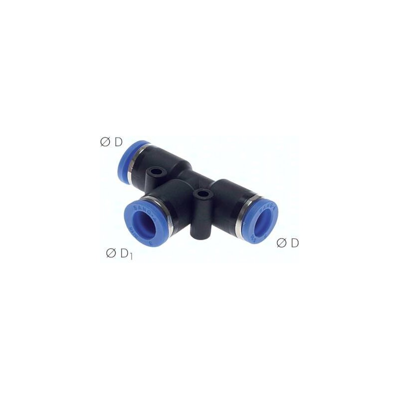 Trójnik wtykowy T 14-8 łączy trzy gałęzie przewodów w jednej kompaktowej obudowie. Dzięki połączeniom wtykowym umożliwia szybkie rozgałęzienie przepływu bez konieczności stosowania gwintów. Konstrukcja zapewnia szczelność i odporność na codzienną eksploatację w warunkach przemysłowych, gwarantując stabilne działanie w systemach pneumatycznych.