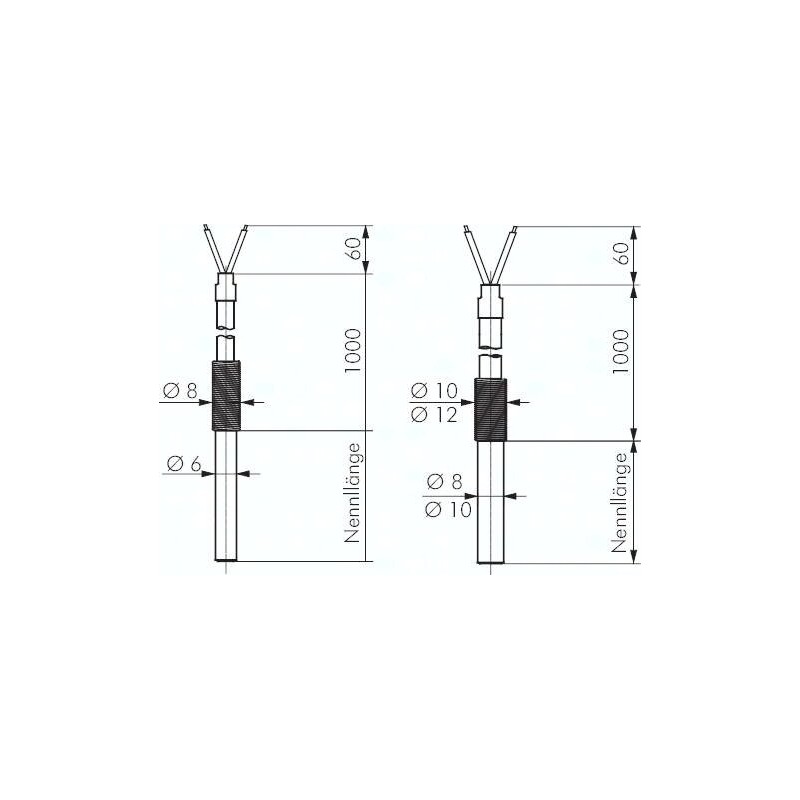 Termometr oporowy (RTD) w postaci wtykowej sondy mierzy temperaturę poprzez zmianę rezystancji elementu pomiarowego, co daje stabilny i powtarzalny wynik. Sonda o długości 50 mm zapewnia efektywny kontakt z medium, a rurka zabezpieczająca o średnicy 8 mm chroni czujnik przed uszkodzeniami mechanicznymi oraz wpływami środowiska. Konstrukcja umożliwia łatwy montaż w standardowych gniazdach i instalacjach przemysłowych.